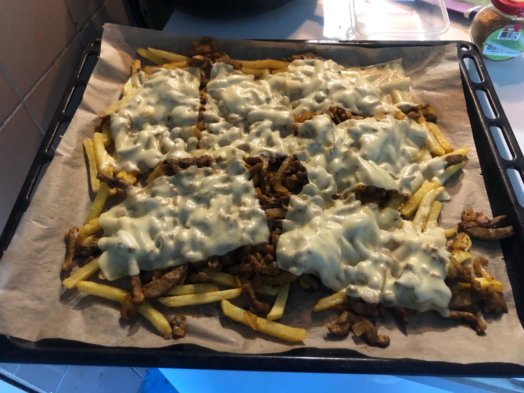 Unbeknownst to me, I had a treat waiting for me at home. Students Rudolph and Klaas were hard at work making kapsalon, a Dutch takeaway invention from 2003. (Kind of similar to the invention of nachos in Texas, really.) I walked into kitchen with my packet of instant soup, and the two took pity on me and generously invited me to have some.