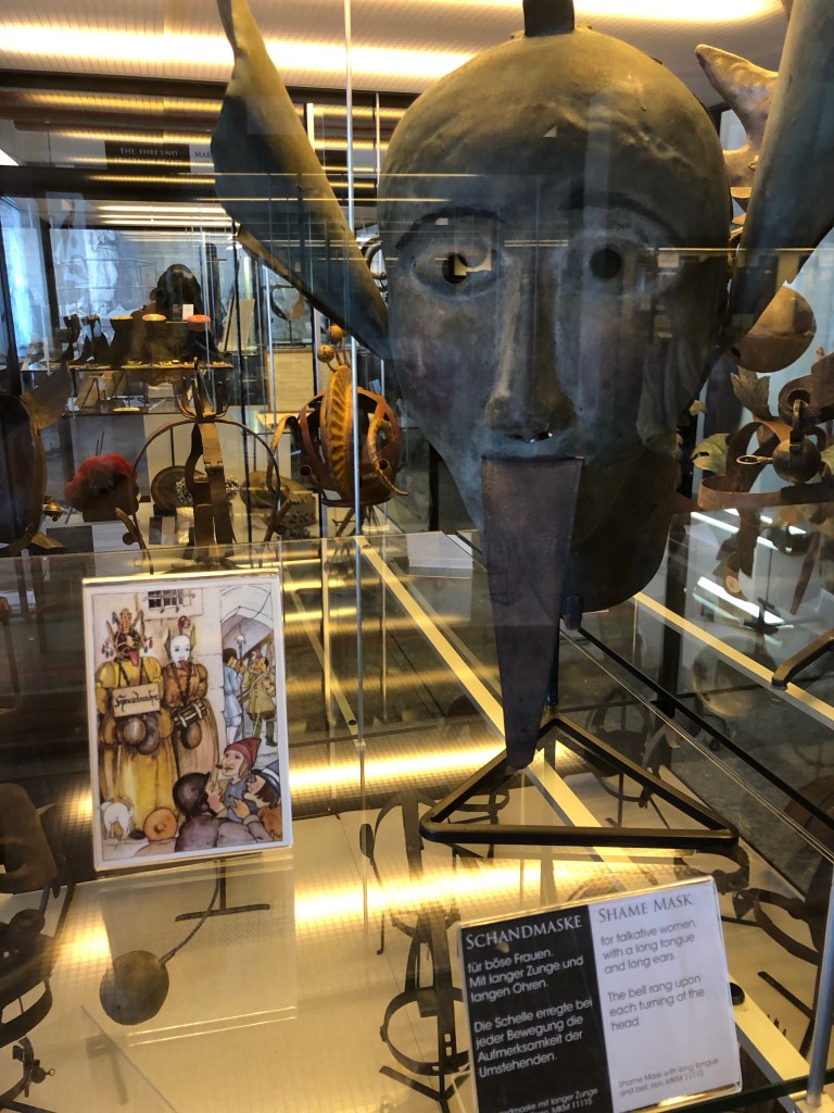 There were various punishments in medieval Germanic towns, ranging from public humiliation to execution, depending on the severity of the crime. Gossiping, drunkenness, arrogant bravado, and loud quarreling could all be punished by public shaming. Offenders would sometimes have to wear shaming masks that corresponded to their crime.