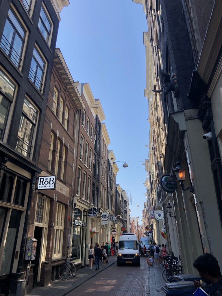 It was a really hot day when I was in Amsterdam — the temperature nearly reached 100 degrees F. Also, it was a weekday. So there wasn’t too much activity or nuisance tourists. However, I’m sure the beautiful streets and canals of De Wallen are victim to rowdy crowds on most nights.